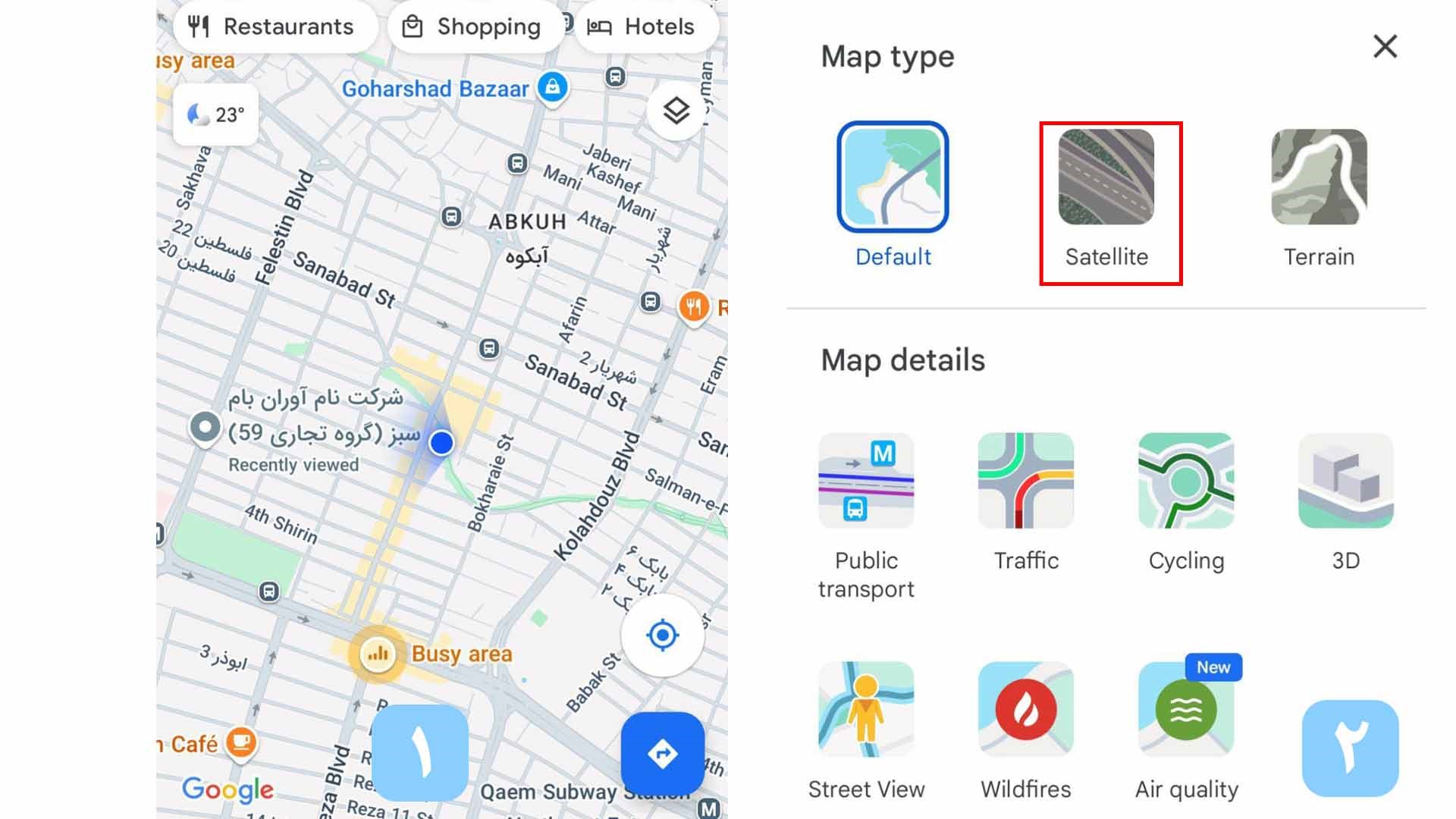 نحوه فعال کردن گوگل مپ ماهواره ای (Satellite View) در موبایل